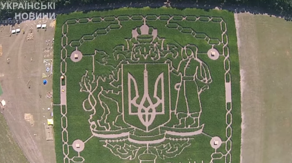 Ранее в Киеве появился огромный лабиринт из кукурузы с тризубцем.