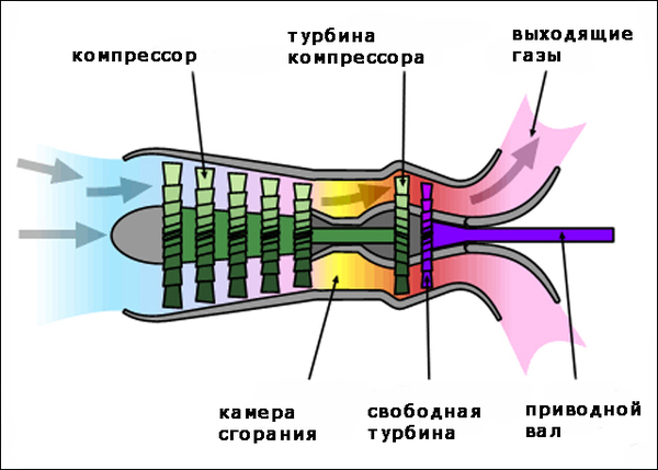 Ну вы поняли, да? В то время как в обычном турбореактивном двигателе энергия исходящих газов используется для создания тяги и раскрутки компрессора/вентилятора, в турбовальном имеется та самая свободная турбина, вращение которой используется для раскрутки чего-нибудь. На вертолете это несущий и рулевой винты(через трансмиссию), а на ВСУ - генератор. Тоже через трансмиссию.