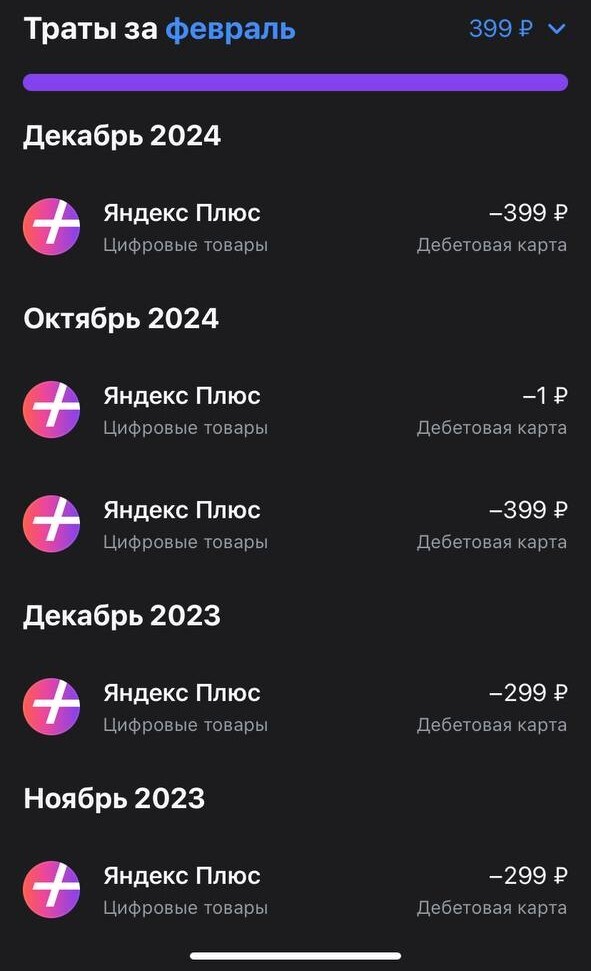 Чтобы вы понимали, до этого они брали по 199р 2 раза в месяц, затем по 299р 2 раза в месяц и только когда подписка начала стоить 399р двойные списания прекратились.