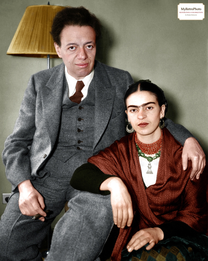 Художница Фрида Кало и ее муж художник Диего Ривера, США, 1933 год.