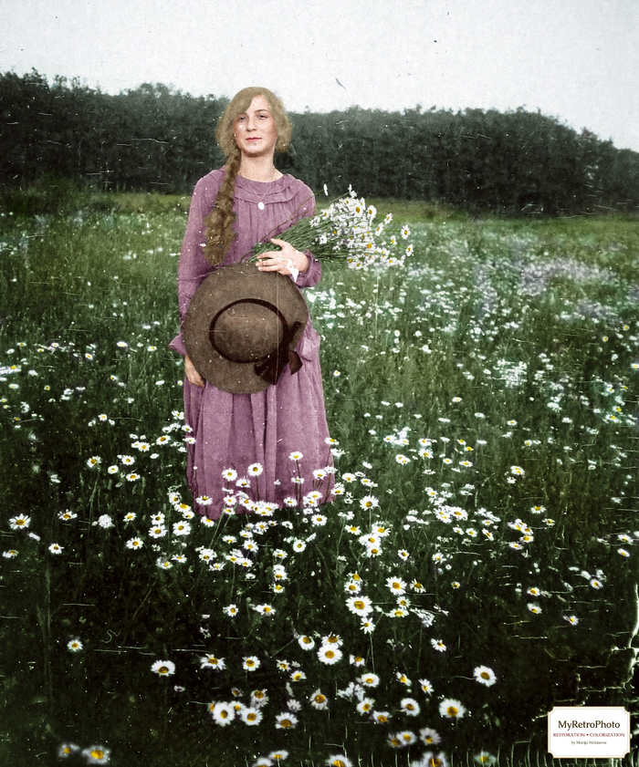 Молодая женщина в поле цветов, 1900-е годы.