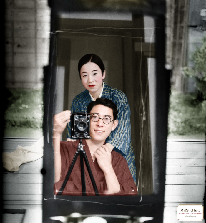 Селфи японской пары. Токио, Япония, 1920 год.