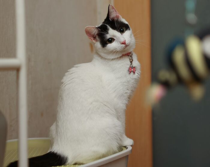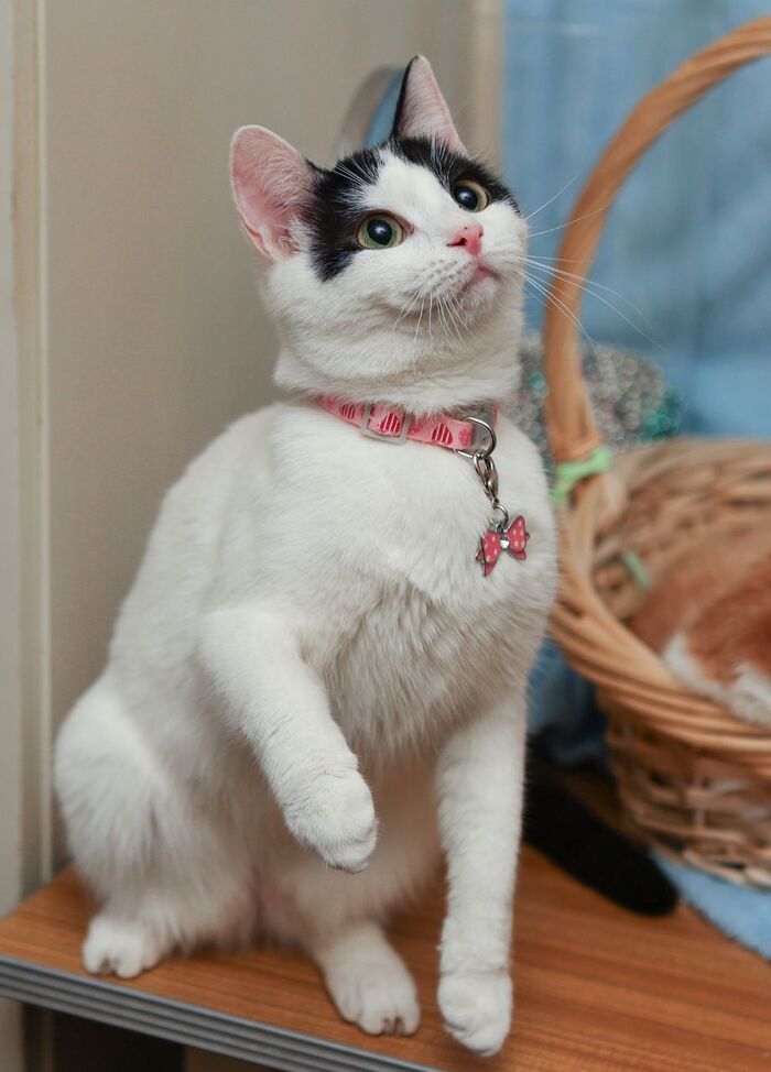 Боня — ласковая нежная кошечка, очень общительная и контактная как с людьми, так и с котиками. Честно говоря, она бы подружилась вообще с кем угодно, но пока что у Бони такой возможности нет.