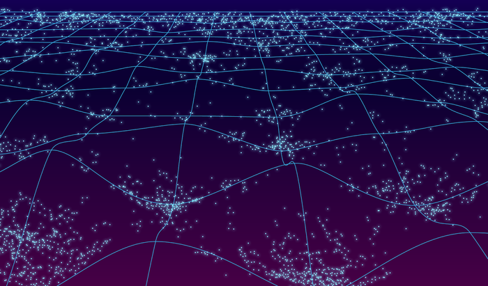 Расширение Вселенной заметно только на больших масштабах: она раздувается в разные стороны все сильнее и сильнее, но на малых масштабах мы не можем этого измерить. Расстояние между нами и, например, ближайшими к нам объектами не увеличивается в связи с расширением мира. В зависимости от того, на каком приближении мы изучаем Вселенную, удивительным образом меняются ее свойства. Например, если мы рассматриваем ее на уровне галактик и скоплений галактик, вполне предсказуемо, что пространство искривляется различными тяжелыми объектами: звездами, черными дырами, самими галактиками и даже небольшими планетами и их спутниками. Степень искривления пространства зависит от массы объекта. Но если мы будем смотреть на Вселенную как будто очень издалека, так, что одна галактика будет казаться крошечной точкой-пикселем на трехмерной карте, то окажется, что на таком масштабе Вселенная плоская — в том смысле, что можно построить треугольник между этими далекими точками и он не будет искривлен, в нем будет 180 градусов, а кривизна — 0. С другой стороны, на маленьких масштабах Вселенная кажется заполненной видимым веществом неоднородно: где-то его больше, а где-то почти нет (это так называемые войды, или пустоты). Но опять же, если смотреть на нее сильно издалека, окажется, что барионное вещество распределено более-менее равномерно.
