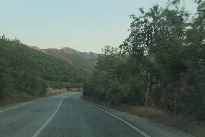 В Феодосию ехали часа 2,5. После Феодосии меня навигатор повёл по нижнему шоссе. А это серпантин. Вообще в Крыму везде серпантин. Где-то лайт версия, а где-то треш. Это безумно красиво, когда ты едешь пассажиром.