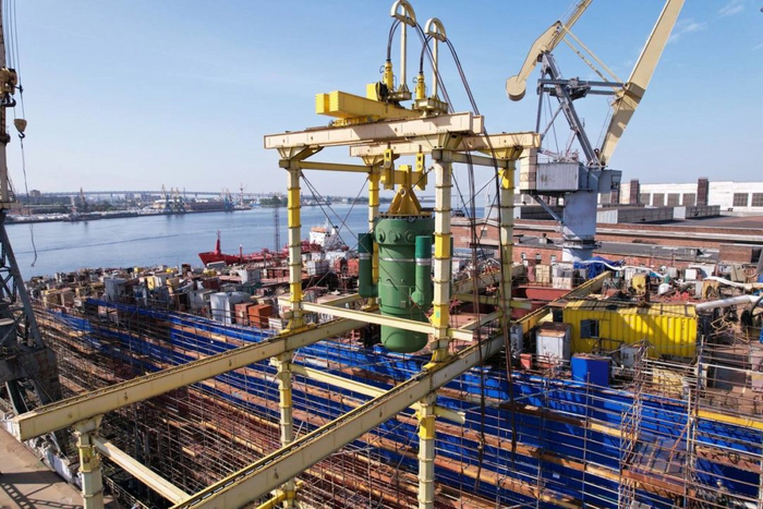Специалисты Балтийского завода погрузили на третий серийный универсальный атомный ледокол проекта 22220 «Якутия» две реакторные установки «РИТМ-200». Об этом сообщает пресс-служба завода.