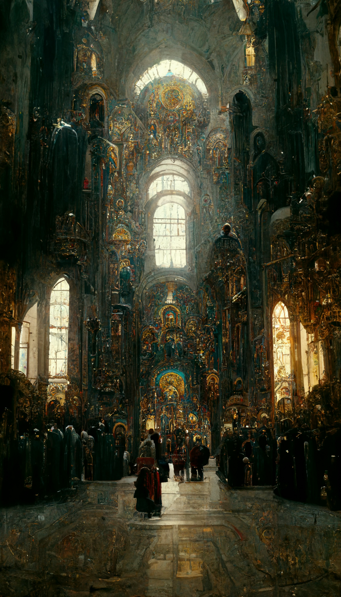 Сгенерировалось по запросу с содержанием слов "собор", "симметрия", "живопись", ещё что-то и при упоминании того же Мухи.