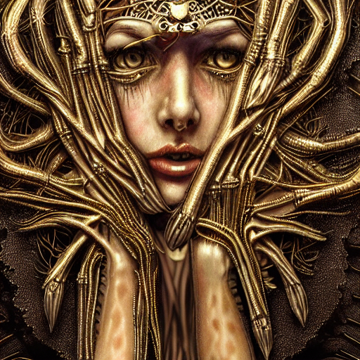 Secret technologies of the future, hyper realistic, fractal super detailed, 4k, Rudolf Giger. gold