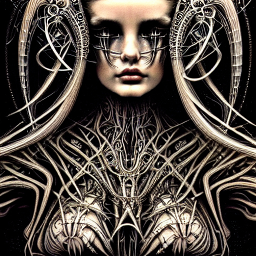 Нейросеть Stable Diffusion генерирует биопанк Рудольфа Гигера