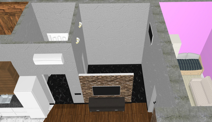 Однако оставалась лишь одна недоделка - так называемый "второй уровень", что в моём понимании - спальное место над гардеробом. Доступ к месту должен осуществляться по лестнице. Потолки 3,6м позволили такое задумать.