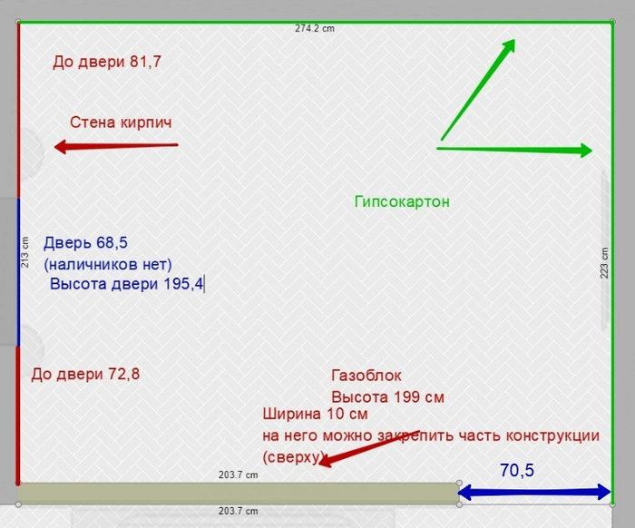 Схематично с размерами (есть ошибки в миллиметрах) + 1 см от стен слева справа и вверху - плинтус:
