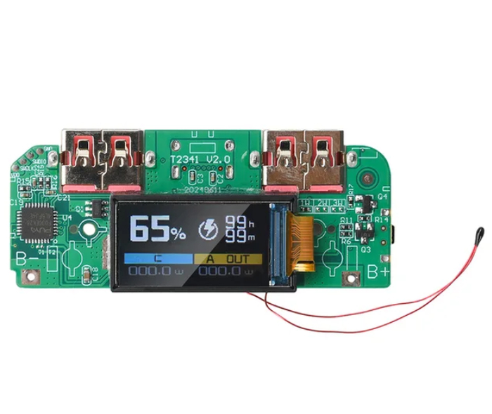 Главная особенность платы — наличие встроенного цветного дисплея, который в реальном времени отображает ключевые параметры: уровень заряда аккумулятора в процентах, напряжение, силу тока и суммарную мощность на выходе. Благодаря этому пользователь всегда видит состояние системы и может контролировать процесс без использования дополнительных измерительных приборов.