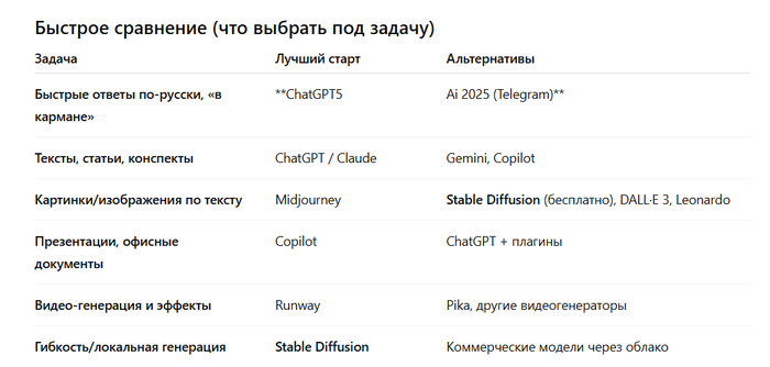 Один запрос — одна цель. Если нужно «и текст, и таблица, и сценарий», разбейте на три шага: точность вырастет.