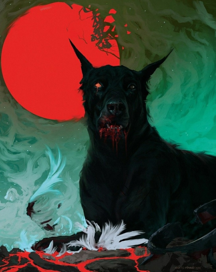 Здоровый, страшный, и охуенно недовольный пес - массой своей закрывающей фактически весь проход к двери - злобным прищуром осматривал пространство всей комнаты. Если бы собаки конечно могли "недовольно щуриться". Этот мог. Чем вызывал еще больше непоняток, и необъяснимого, тихого ужаса. Монстробразное существо резко перевело раздраженный взгляд на стоящих перед ним и злобно выдохнуло. Просто выдохнуло! Медленно и с пугающим присвистом! От одного выдоха этого, Гизка едва не навали кучу в "новенькие" штаны. Гигантская псина осматривала каждого из недотеп с туповатыми рожами - и переглядки эти были похожи на сцену из вестернов, предвещающие смертельную дуэль. Монстр глянул на торчащую изо рта Бади потухшую и пожеванную самым варварским образом сигару - сигара выпала, из невольно дрогнувшего рта мужчины. Дюк шумно сглотнул и осторожно потянулся к пистолету на ремне. Пес резко глянул ему в глаза - и мужик выпрямился по стойке смирно. Нова перепугавшись не на шутку, отбросил от себя все еще державший в руках гранатомет - как только пересекся взглядом с серой громадиной.