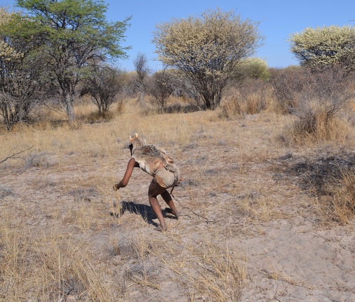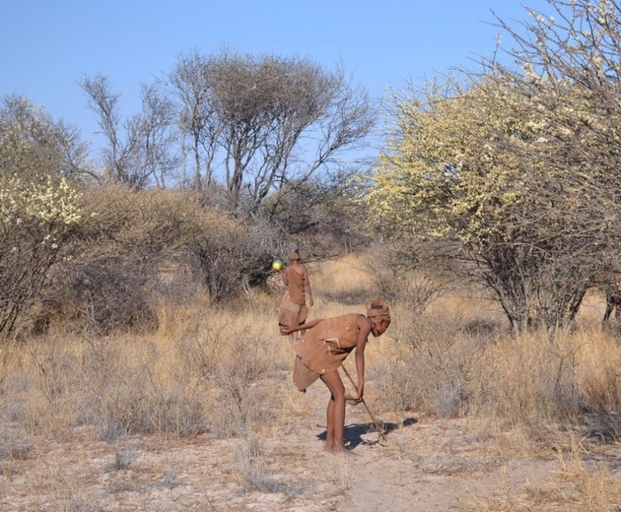 Не смотря на то, что бушмены лучшие в мире следопыты, мясо им удается есть не часто. Одна из причин того, что бушмены маленькие и стройные – как раз недостаток белковой пищи в рационе и основным видом добычи пропитания для них, как и тысячелетия назад является собирательство.