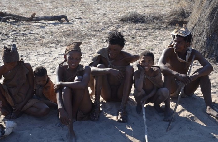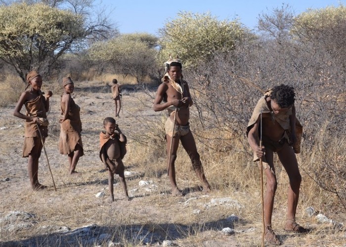 Раньше бушмены жили в более благоприятных местах - нынешней ЮАР, Ботсване и Намибии. В Калахари их начали теснить сначала племена Банту и Коса, которые мигрировали из центральной Африки, а затем к этому широко присоединились и европейцы.
