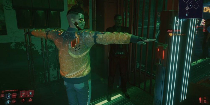 Собственно, вот этот киберкавказец, будто танцующий киберлезгинку - просто чувак, застывший в Т-позе. Я таких встретил дважды или трижды. Веселее было с глитчами - сидящий на воздухе человек, робот, копирующийся из своей собственной модельки, машины, ездящие друг в друге - такого было куда как больше. Но тоже не сказать что прям много - игру проходить это не мешало (потому что мне повезло в отличие от тех, кому квесты ломало намертво). Ну, правда, я ещё использовал дедовский способ сохранения - в три последовательных ячейки, чтобы при случае всегда можно было бэкапнуться. Но это для тех кто любит заморачиваться.