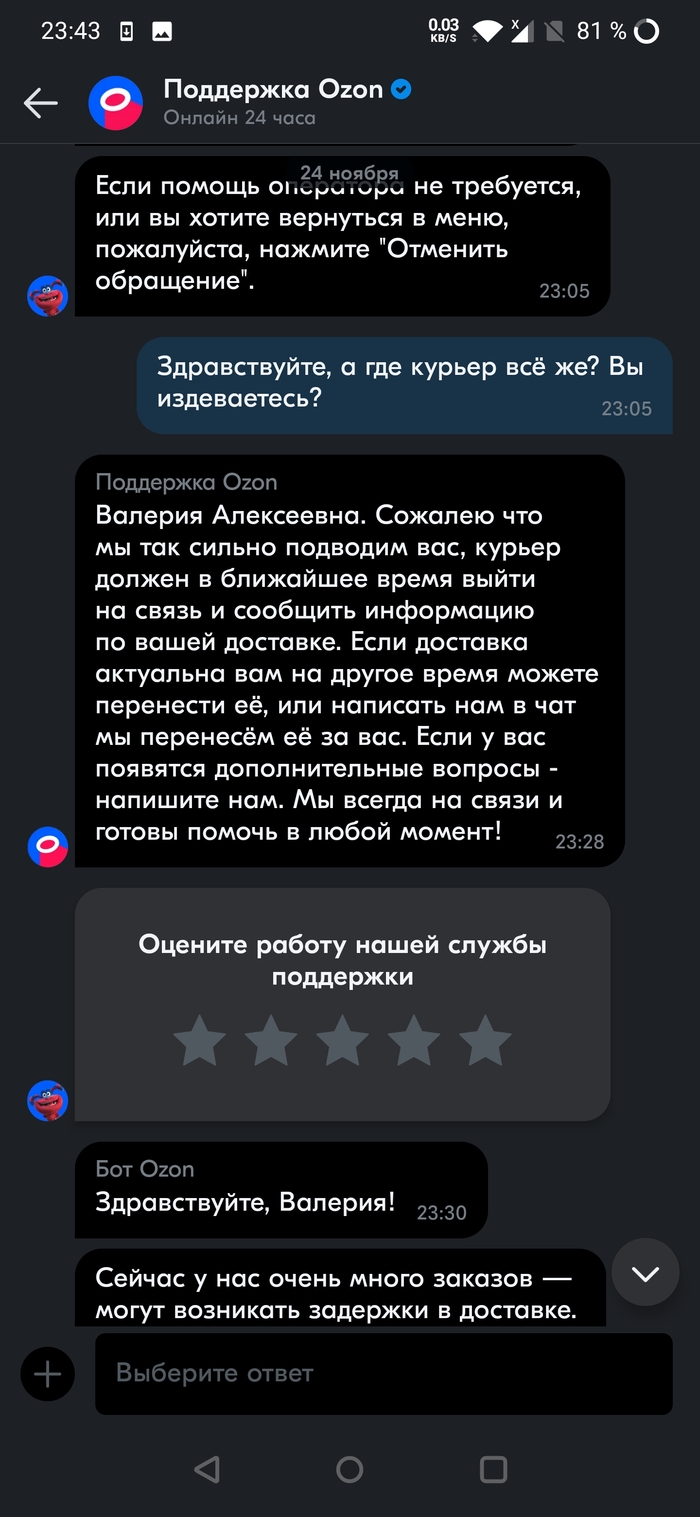 Или может посылка канула в лету, и привозить банально нечего, а меня кормите завтраками? @Ozon