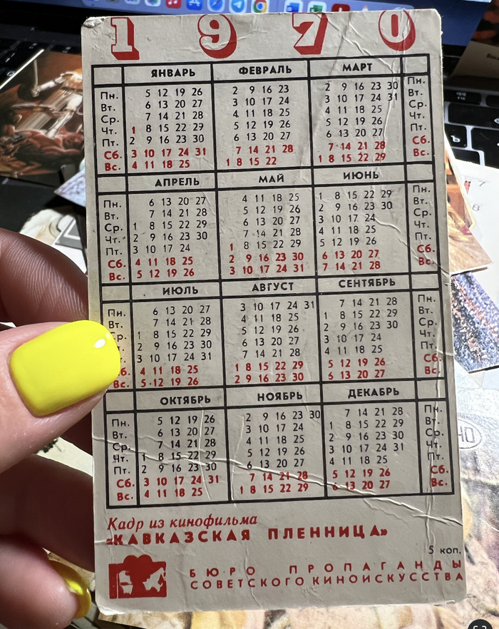 Сам фильм вышел в 1966 году, а календарик выпустили спустя 4 года: даже не думала, что он ТАКОЙ старый.