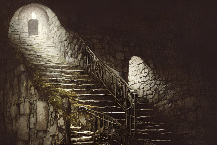 На месте удаленной плиты обнажился черный провал, из которого вырвались клубы столь тошнотворных миазмов, что мы с отвращением отпрянули назад. Когда спустя некоторое время мы снова приблизились к яме, испарения были уже не такими густыми. Наши фонари осветили верхнюю часть каменной лестницы, сочащейся какой-то злокачественной сукровицей подземных глубин. По бокам ее тянулись влажные стены с налетом селитры. Именно в этот момент прозвучали первые сохранившиеся в моей памяти слова. Нарушил молчание Уоррен, и голос его — приятный, бархатный тенор — был, несмотря на кошмарную обстановку, таким же спокойным, как всегда.