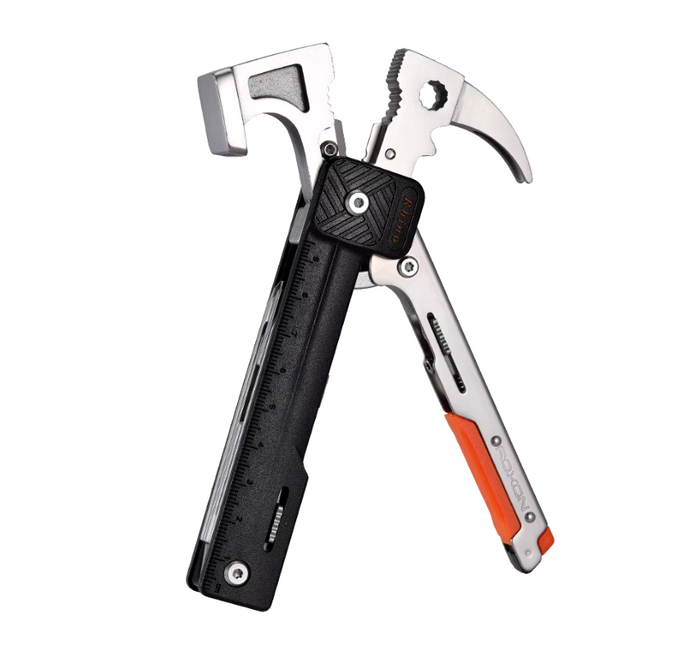 Мультитул в виде молотка, сочетающий множество инструментов. Включает головку с гвоздодёром, кусачки, плоскогубцы, гаечный ключ, нож, пилу, открывалки, отвёртки, огниво и линейку. Компактный и универсальный инструмент для походов.