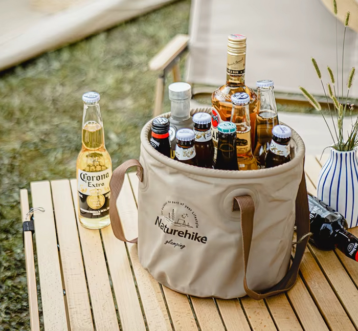Компактное и лёгкое ведро объёмом 10 или 20 литров. Изготовлено из водонепроницаемой ткани, держит форму даже наполненным. Подходит для воды, продуктов и мелких вещей. Имеет удобные ручки для переноски.