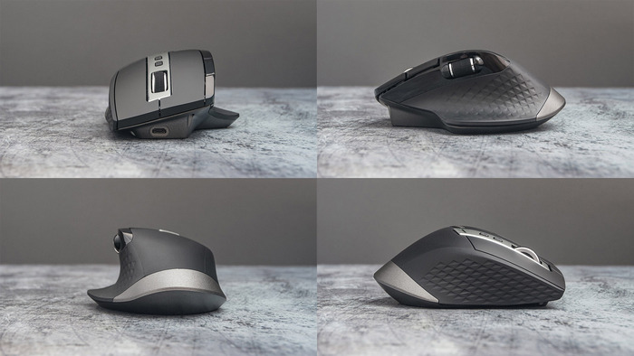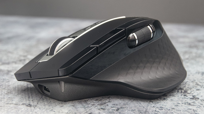 Основные кнопки негромкие. Обычный не звонкий клик. Кнопки листания чуть громче и заметно звонче основных. Их расположение на верхней плоскости и управление указательным пальцем очень непривычно. Не неудобно, а именно непривычно. Кнопка колеса чуть звонче основных кнопок, а по громкости примерно такая же. Само колесо при прокрутке тихое, но, если крутить быстро, слышно стрекотание тактильных отсечек. Второе колесо, то что под большим пальцем, крутиться немного туже первого, а отсечки более выраженные. С непривычки пользоваться им не очень удобно в физическом плане, а в прикладном – одно удовольствие. Например, удобно крутить таблицы или крупное изображение в графическом редакторе по горизонтали.