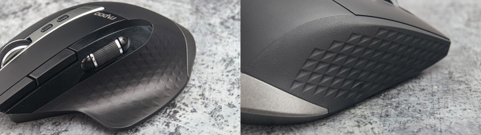 И на левом, и на правом боку корпуса есть вдавленный рельеф в виде небольших треугольников, призванный сделать мышь более ухватистой.