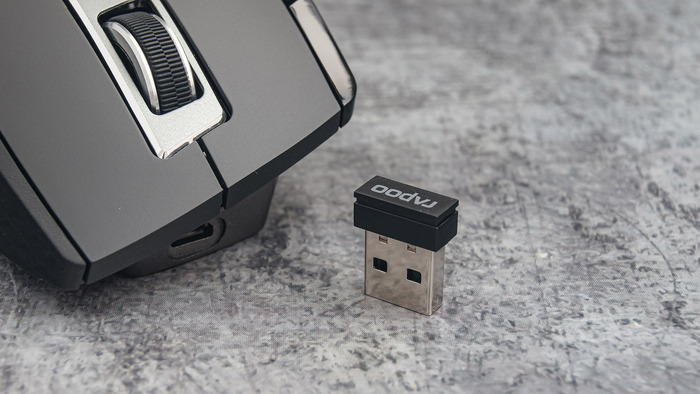 В комплекте поставки есть USB-ресивер, а но вот никакого отсека для его хранения внутри мыши не предусмотрено.