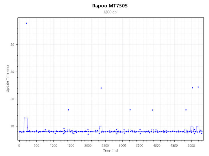 Ознакомимся с техническими возможностями мыши Rapoo MT750S подключенной по радиоканалу (через USB-ресивер) к ПК и работающей при разрешении 1200 DPI.