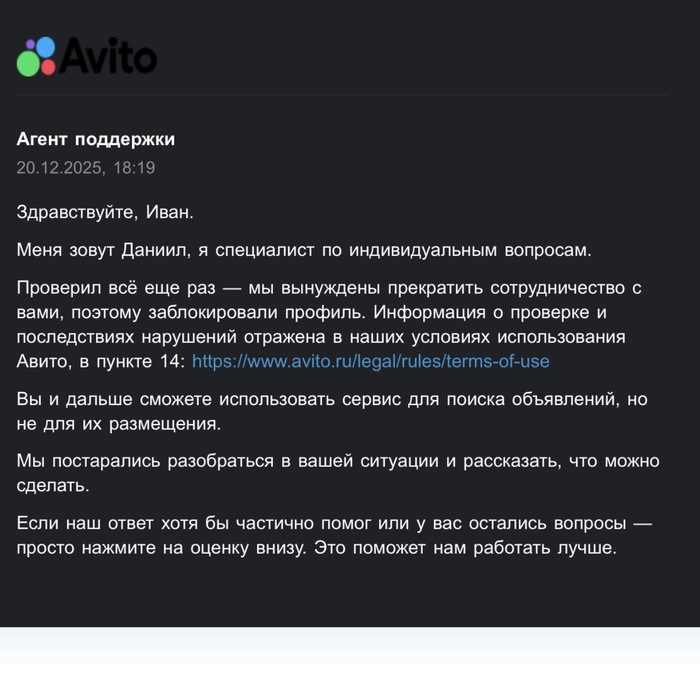 Недавно зарегистрировался на торговой площадке под названием Авито. Не прошло и 5 минут как меня кикнуло с аккаунта. Надо было предоставить документы, я выбрал регистрацию по паспорту, прошел проверку но у приложения были другие планы. Оно посчитало что я уже регестрировался по этому паспорту хотя это не так.) решаю я значит регнуться во водительским правам. Упс)) мне прилетает бан.