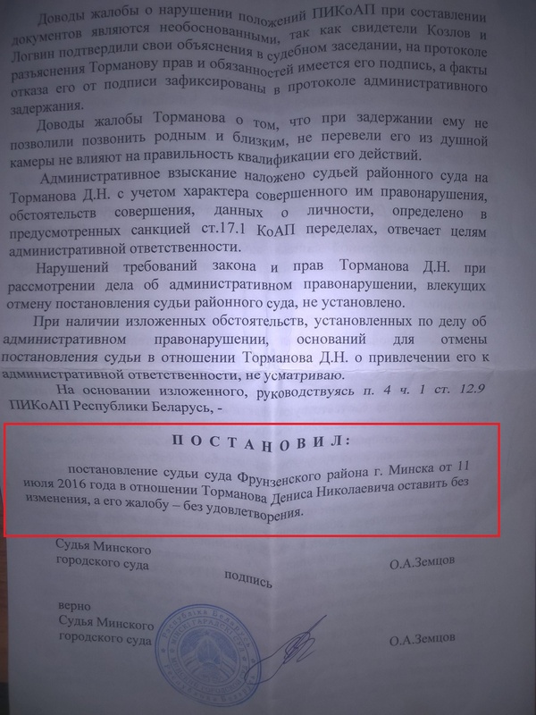 Я подал на апелляцию, через месяц в городском суде пересмотрели дело и оставили постановление без изменения. Дальше я обжаловать не стал, потому что судья меня внимательно выслушал, доверительно сказал что ситуация ему понятна, а через несколько минут вышел из совещательной комнаты и отказал в удовлетворении жалобы.
