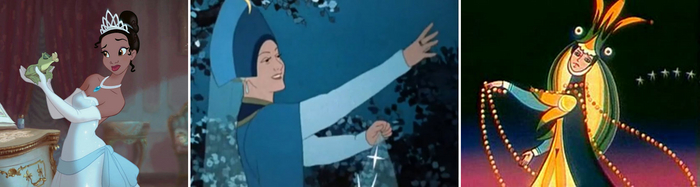 Зато у Тианы аналогов целых два. Дисней, Принцесса и Лягушка, 2009. Союзмультфильм, Царевна-лягушка, 1954. Союзмультфильм, Василиса Прекрасная, 1977.