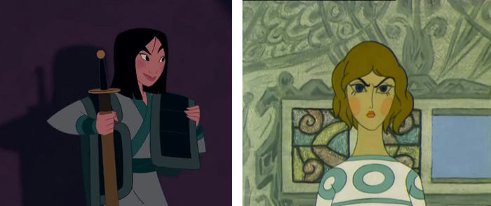 Мулан, Дисней, 1998. Василиса Микулишна, Союзмультфильм, 1975