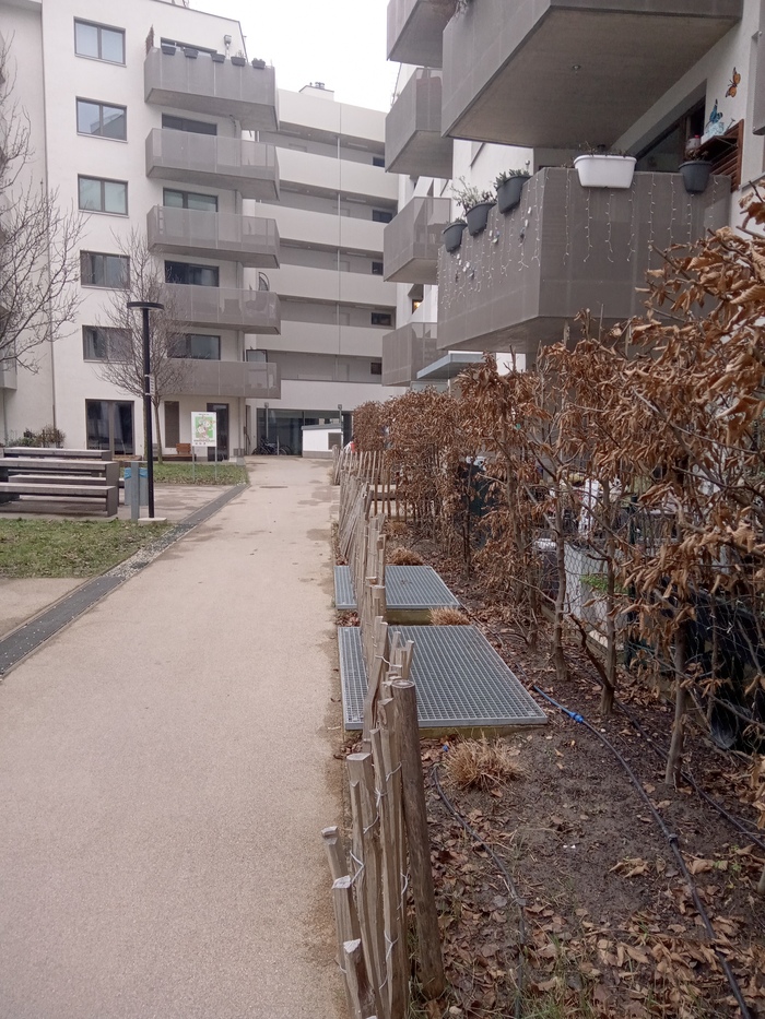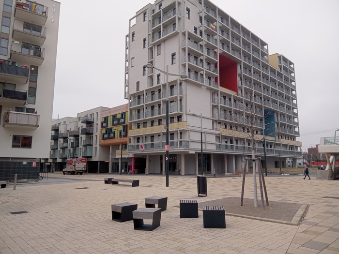 В Вене у меня выдались свободные пару часов, я решила пройтись по жилому району, посмотреть на современное жильё и житьё. Райончик находится сразу же за железнодорожным вокзалом, он относительно новый.