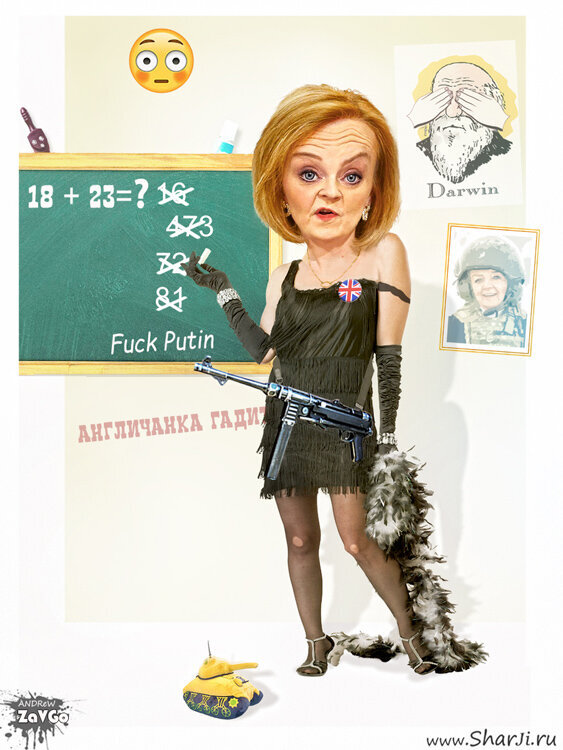 «Англичанка гадит» (фрагмент). Лиз Трасс шаржи и карикатуры на политиков и знаменитостей.