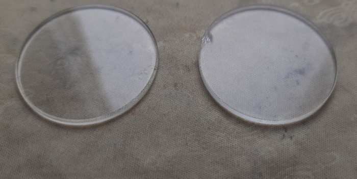 Так теперь видим скол на стекле который справа, а новое минеральное стекло слева поставим вместо этого.