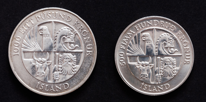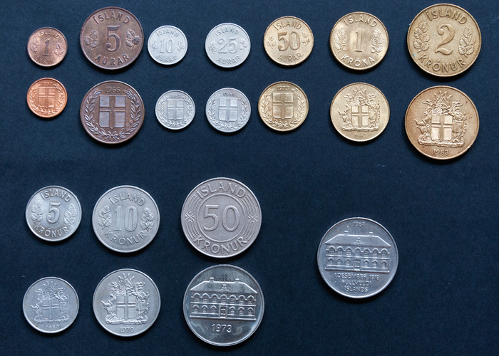 На фото ниже, все типы монет регулярного чекана и аверс юбилейной монеты, посвященной 50-летию независимости Исландии. Здание - альтинг, парламент Исландии. Исландский альтинг, как форма народовластия считается одним из старейших в мире.