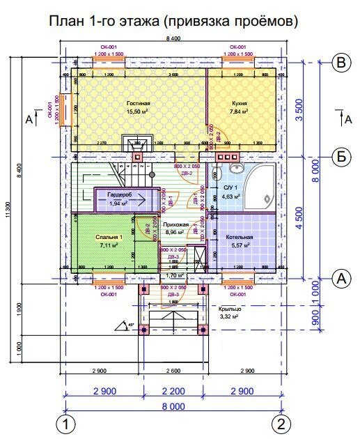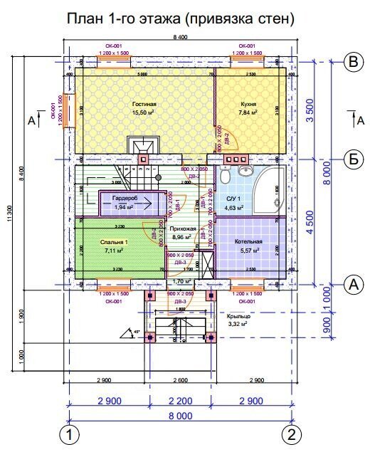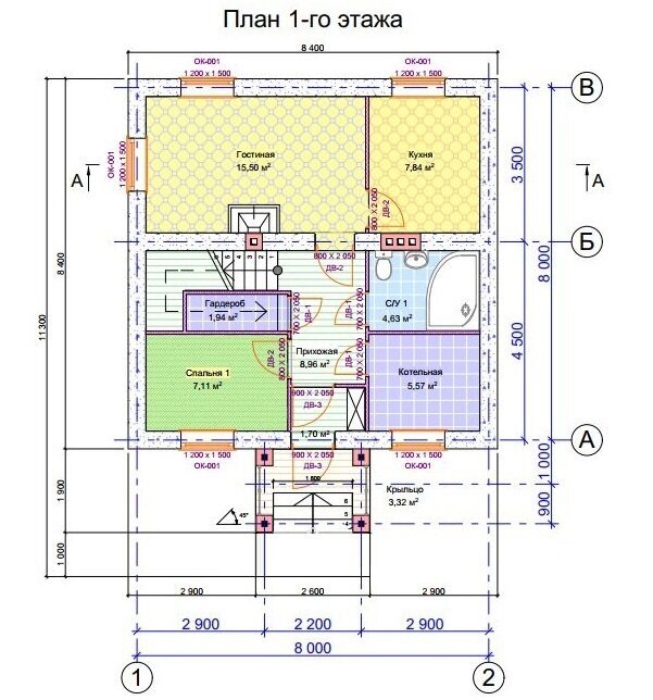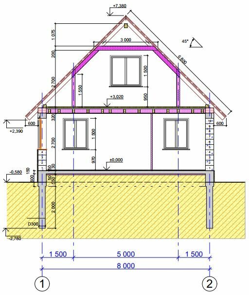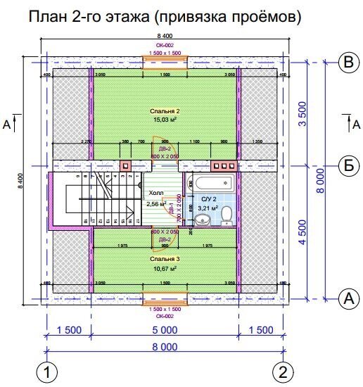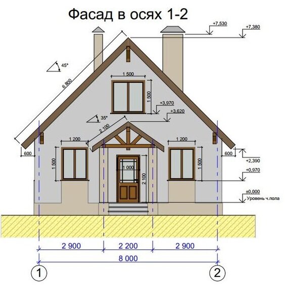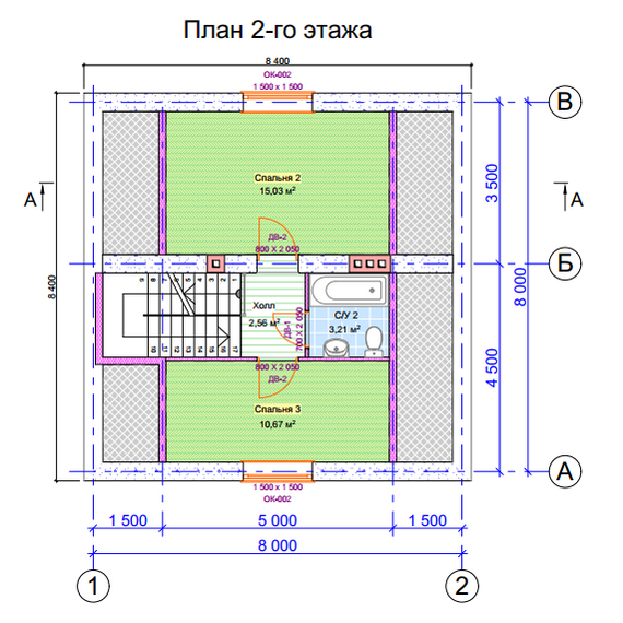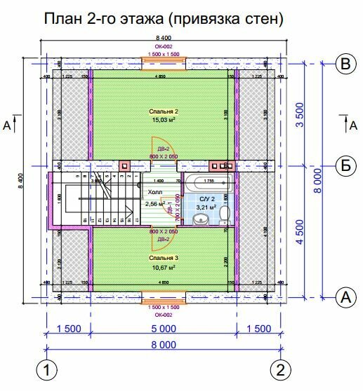 Размеры: 8х8м (по первому этажу), общая площадь 88м2