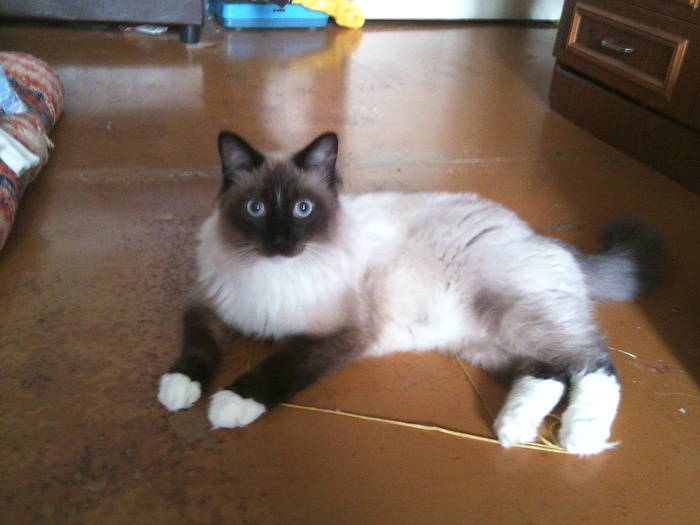 Аня сказала, что это порода невская маскарадная. Я посмотрела в Интернете, - да действительно, похож. Лишь уже гораздо позже, когда Бася снова оказался у меня, я поняла, что он регдолл. Уж не знаю, насколько чистопородный, но все признаки были налицо.
