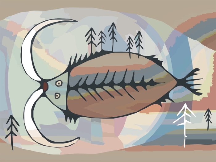 В поверьях северных народов этот зверь жил под землёй, и лишь «рога» его торчали. Он бродил по землям и создавал реки, что привело к Всемирному потопу. С приходом христианства библейские мотивы объединились с народными мифами. Это животное не уместилось на Ноев ковчег и плавало в океане, пока птицы не потопили его, сажаясь на его «рога». О ком идёт речь?