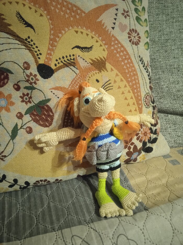 Дальше были попытки работать с плюшевой пряжей. Ошибки такая пряжа мнене прощала, игрушки получались из серии "поставить на полку и не трогать" из-за сыпучести нити в местах сильного натяжения или перевяза.
