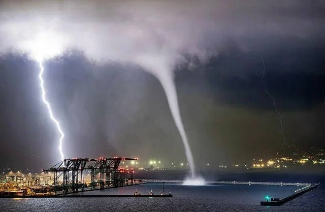 Погодные явления - это тоже часть нашей природы. Перед вами завораживающий снимок, который сделали в Италии. Фотограф пытался сфотографировать водный вихрь, когда внезапно вспыхнула, а следом сразу же прогремела молния, ударившая всего в километре от места съемки. Получился просто умопомрачительный кадр!