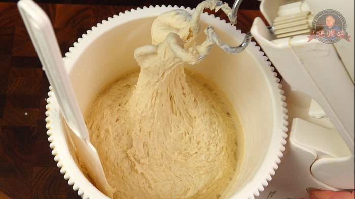 Добавляю муку и хорошо смешиваю. Тесто должно быть густым.