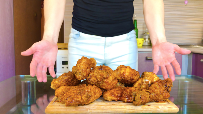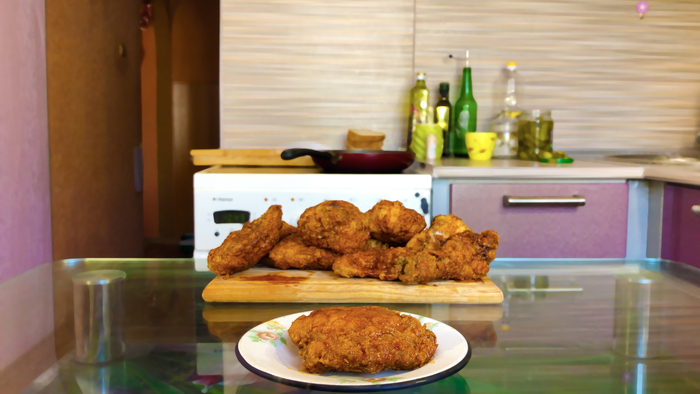 По остроте курица получилась на 10 из 10, так что можно уменьшить количество кайенского перца. При этом курица очень вкусная, сочная и слегка сладковатая. Я бы не стал нэшвилл курицу сравнивать с курицей КФС. Во вкусе есть небольшая разница. А вот в приготовление и подаче разница огромная.