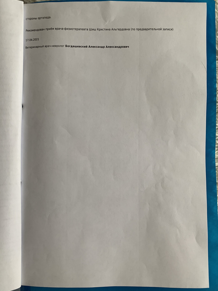 Ортопед направил к реабилитологу, нужно ездить на физиотерапию и заниматься дома со щенком. Всё срочно. Иначе можно упустить время.