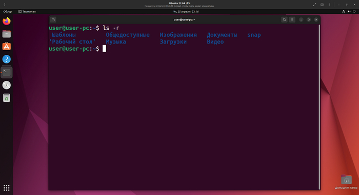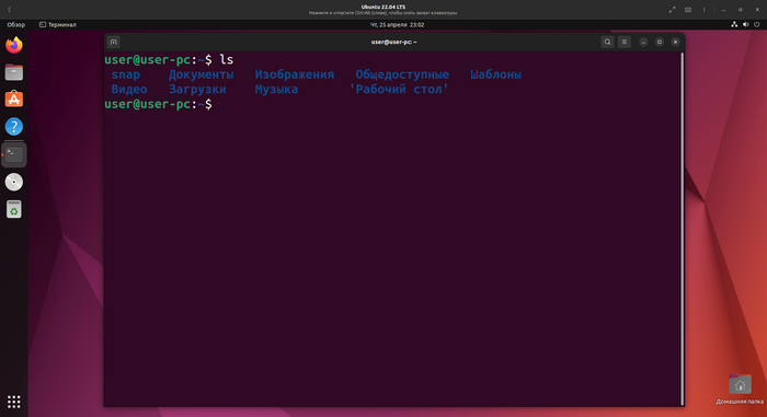 Итак, после того как мы разобрались с некоторыми особенностями команды ls, теперь давайте посмотрим как с ней работать. Для этого открываем терминал в вашем дистрибутиве Linux и вводим команду: