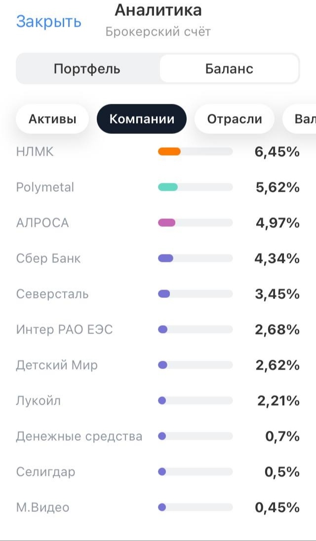 Процентное соотношение нормальное. Можно добавить Фосагро, Полюс Золото. $PHOR