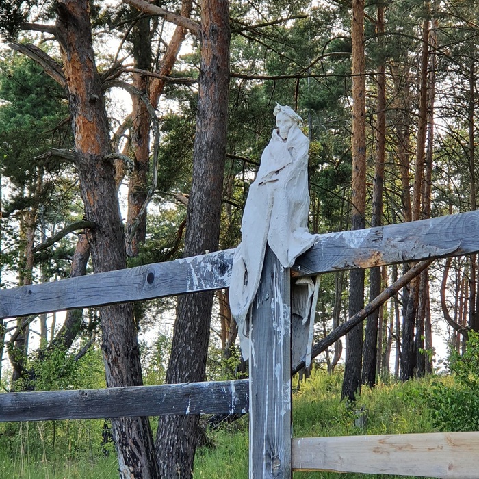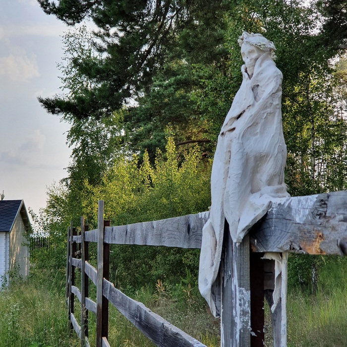 Ну и еще на пару таких молчаливых охранников хватило гипса, так что забор издалека стал выглядеть как облепленный голубями ))
