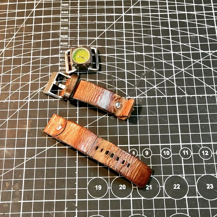 Очень интересный заказ. Старый ремешок на часах Дизель пришёл в негодность. Очень интерестно было повторить ремешок за французами, про ремешки на часах этой марки я раннее читал, на часы Дизель тоже ремешки приходилось делать, но повторить оригинал не представлялось возможности. Итак, я взял итальянскую кожу, разобрал оригинал и полностью его повторил, включая толщину всех склеенных деталей. Интересный опыт🤗🤗🤗🪡💯🐂
